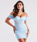 Show off a flawless 'fit at your next party in this curve-hugging bodycon mini dress. It features an off-the-shoulder sweetheart neckline. short sleeves. a corset-designed bodice with sheer inserts and piping accents. ruching down the side and back seams. and a mini-length hem. Style with rhinestone fringe earrings and platform heels.