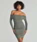 Show off your stunning curves in this form-hugging mini dress made with pointelle knit fabric with plenty of stretch. It features a chic off-the-shoulder neckline with a fold-over design. long fitted sleeves. and ruched side seams along the short bodycon silhouette.