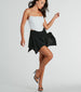 Flirt it up and flaunt your trendy style in this adorable hanky hem mini skort! Designed with a stretchy knit fabric. this adorable skort features a ruched high waist leading to a hanky hem with an asymmetric design creating an effortless flowy A-line silhouette over fitted shorts. Style with a corset top and mules for the chicest happy hour look!