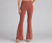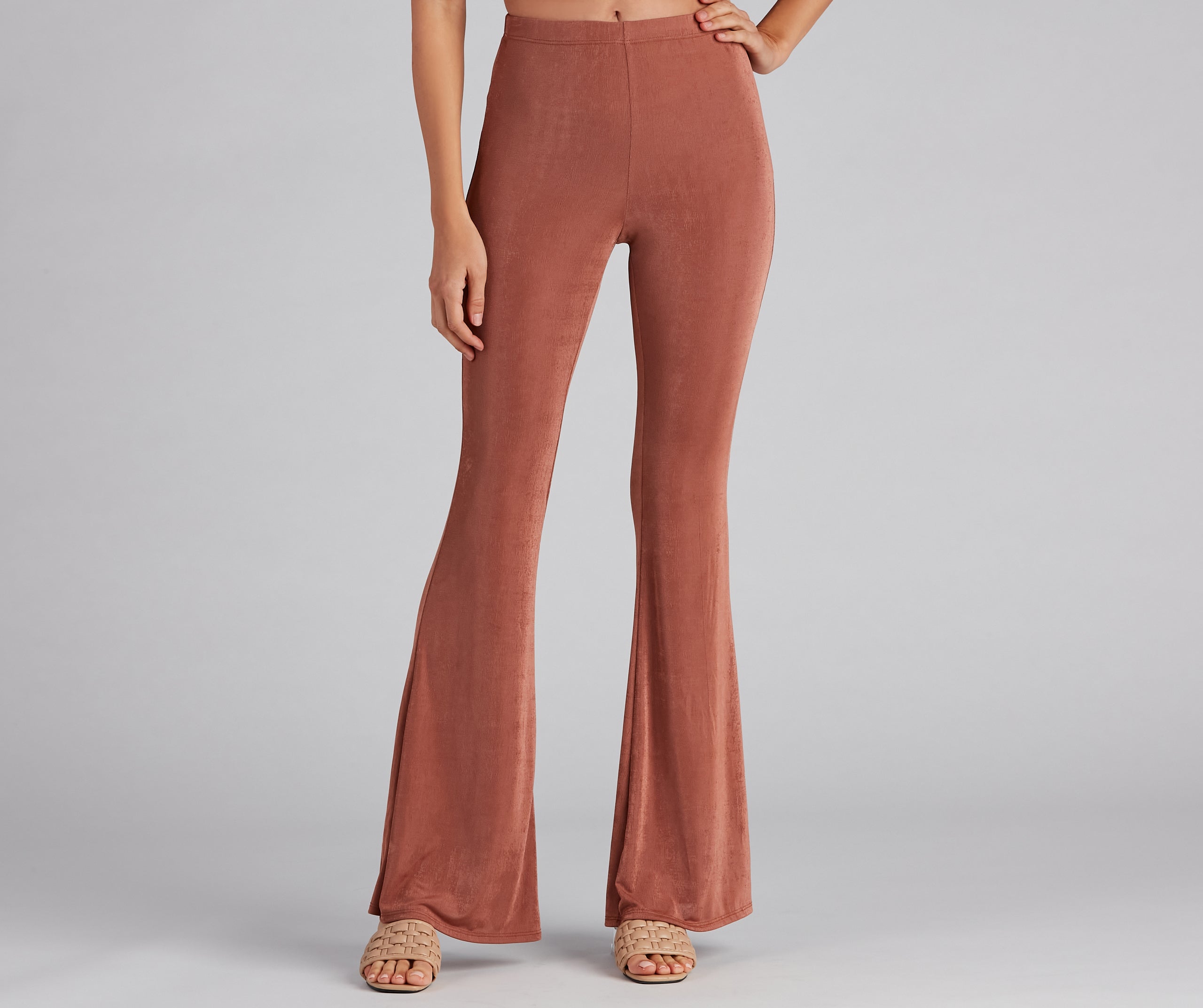 Create a flirty vibe in these flare high-rise pants featuring an elasticized waist and a form-fitting silhouette on slinky knit fabric. Complete the look in the matching top.