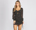 Model is 5'9" with a 32" bust. 24" waist and 34" hips. She is wearing a size small.