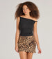 Flirt up the night in this leopard print satin mini skirt featuring a high-rise waist paired with a short A-line silhouette for an adorable look. Style with a crop top and knee-high boots!