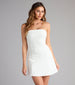 This forever chic strapless mini dress is all you need for upcoming soirees with a flattering A-line silhouette and mini-length hem. Pair with earrings and a glam hair accessory.