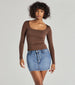 This knit long sleeve top will be a forever staple for your everyday styling. Pair with high-rise pants or skirts and layer with a chic jacket.