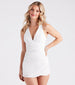 Show off a fresh summer vibe in this elevated and chic woven romper. It features a sleeveless V-neckline. tank shoulder straps that lead to an open back with a cross-back lace-up design. a lower back cutout. a flattering high waist seam. a ruched wrap-front design with a short skirt overlay. and fitted shorts. Style with espadrille wedges for a cute daytime party look.