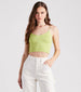 Look like the total girl next door in this basic cropped tank. This staple piece goes with everything from your casual looks or as a layering piece for a dressed-up look. The cropped tank features a sleeveless bodice and bungee spaghetti straps for a secure and comfortable fit. Complete your girl-next-door look with high waist jeans and a pair of sneakers.