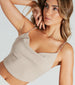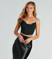 Your new favorite glam glitter crop top is here! This must-have stunner features a cowl neckline and rhinestone faux pearl straps to add a touch of luxury. Plus the dual tie-back closure allows for a perfect fit. and the cropped hem adds extra drama. Complete the look in a satin midi skirt for a birthday dinner and cocktails!