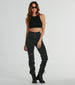These iconic rhinestone high waist straight-leg jeans are for the girlies who love the glam vibes! Made with a cotton-blend denim fabric. this bold pair of denim features a high waist and a straight-leg fit with a tapered frayed hem. The all-over rhinestone studded design will amp up the glitzy factor of your party or festival 'fit! The jeans include a five-pocket and belt loop design with a hidden front zipper and button closure and a chic slit detail at the thigh. Style with a bustier top and booties.