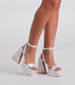 You'll be a glam icon in these fabulous rhinestone platform heels! Featuring an open square-shaped toe with a strap. an adjustable ankle strap. a tall platform. a wide block heel. and all-over sparkly rhinestone embellishments. these platforms will make you a major trendsetter. Complete the look with hoop earrings.