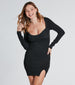 It's the season of glam. and you'll shimmer and glimmer in this mini sweater dress! It features a sweetheart neckline. long fitted sleeves. a mini-length hem with a fab side slit. and a bodycon silhouette to show off your curves. The ribbed knit fabric features a sparkly lurex threaded design for a glam touch. Style this sweater dress with strappy mules for a holiday party!