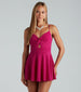 This adorable skater romper is sparkly glitter perfection! It features a sleeveless V-neckline with a twist-front design followed by a small keyhole cutout. spaghetti straps. dual high waist seams. a short skater skirt over shorts. and a fit and flare silhouette. The glitter knit fabric has a moderate stretch. Style with a rhinestone necklace and heels for a school dance!