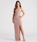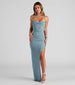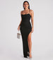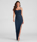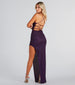 Gloria brings the glam factor in her sparkly all-over glitter and daring thigh-high slit. Your grand entrance awaits in this formal long dress featuring a sleeveless cowl neckline. spaghetti straps. a high waist seam. and a sultry open-back with a lace-up design. She hugs your body like a glove on her form-fitting. floor-length hem crafted on delicate crepe knit fabric with an inner lining and a moderate stretch. Complete your dressy look with a chic clutch and heels.