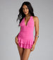 Perfect for any occasion when you want to shine. this halter romper features a flattering form-hugging fit and playful ruffles that create movement with every step. Style with lace-up heels.