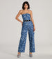 It's all about good vibes when you're in this tie-dye jumpsuit! This jumpsuit features a flattering strapless neckline and front zipper closure. a wide-leg silhouette. and cargo pockets add a trendy touch. while the tie-dye denim fabric brings a playful and unique look. Complete the look with platform sneakers for casual plans!
