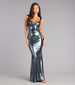 Crafted to glow from every angle. the Gwyneth metallic mermaid dress sculpts with a ruched sweetheart neckline and dramatic floor-sweeping silhouette. A sleek back cutout with bar strap detail adds just the right edge. along with the high-shine finish—perfect for black-tie nights that call for all-out glamour.