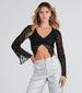 Look chic in this mesh crop top to be the center of attention! Crafted from sheer mesh fabric in a trendy striped pattern. this crop top features long sleeves with slit cuffs. a flattering V-neckline. and a center-front ruched seam with a slit. Style with high-rise cargo pants for weekend plans!
