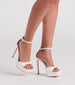 Step out ready to slay in these fabulous platform stiletto heels! They feature an open square-shaped toe with a strap. a thin adjustable ankle strap. a closed back. a bold platform sole. and a sleek tall stiletto heel. Style with a glitter clutch.