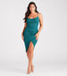 Sparkle at every party or celebration in this glitter midi dress featuring a sleeveless cowl neckline. spaghetti straps. and a form-hugging wrap silhouette that creates the front slit along the midi-length hem. Complete the look with a collar necklace and earrings for extra shine!