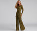 Take care of business in this high fashion jumpsuit featuring long sleeves. an off-the-shoulder neckline. tie waist. and wide-leg silhouette. Composed of rib knit fabric with a moderate stretch. Perfect for styling with a blazer.