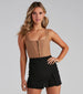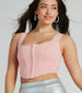 Get hooked on this corset top that adds a sultry appeal to any look. This crop top features a flattering square neckline. supportive tank straps. and a corset-designed bodice with hook and eye-front closures to help accentuate your hourglass figure. The rayon blend fabric has a moderate stretch to help create a structured fit that forms to your curves. Style this corset crop top with high-rise jeans for a casually chic ensemble or pair it with a flirty mini skirt for a sexy date night look.
