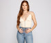 Get hooked to this cute crop top that draws you in with stylish deets! The crop top features a sleeveless V-neckline. spaghetti straps. multi-hook and eye front closures. and a cropped hem. The top is composed of a ribbed knit fabric that offers a form-hugging fit with plenty of stretch. Complete the look with a denim skirt and mules.