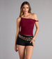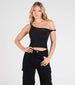 An iconically chic one-shoulder crop top you'll love styling up or down for weekend lunches or date night!