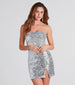 Radiate gorgeous glam girl vibes all night long in this iconic sequin bodycon mini dress! It features a strapless straight-across neckline with a short fold-over design. a mini-length hem with a front slit. a bodycon silhouette to flaunt your figure. and all-over sequin embroidery on lined mesh fabric for that stunning sheen. Style this mini dress with rhinestone heels for a glitzy holiday party look.