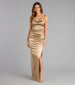 Level up your look in the gorgeous Iliana satin formal dress! The corset-style bodice will create a snatched waist while the fitted column silhouette showcases your curves.