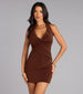 This dress does all the flirting for you. Designed with a draped cowl neckline. ruched back seam. and curve-skimming slinky fabric. it's made to move with you. From dinner dates to dance floors. it's giving effortless heat.