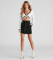 You'll be in the mood for the fall season with this adorable corduroy mini skirt! It features a high-rise fitted waist. a tie-front belt. front pockets. a button-down design. and a short. form-hugging fit. Style with a cropped sweater and ankle booties.
