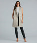 Invest in your new cold weather style with this faux wool long vest perfect for layering over cute 'fits! It features a sleeveless lapel collar neckline. an open front design. hidden side pockets with satin lining for keeping your hands warm. and a long-length hem. Complete the look in essential faux leather booties.