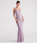 Strike a stunning impression with a formal glitter dress that dazzles from all angles. Irene features a sleeveless V-neckline. spaghetti straps. a backless design with lower back ties. and a floor-length hem with a mermaid silhouette. The dress is composed of a glitter knit fabric that offers a form-hugging fit with moderate stretch. Complete the look with rhinestone heels and a clutch.