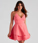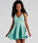 The adorable Isabella formal skater dress will have you ready to celebrate in style! She features a sleeveless V-neckline. adjustable spaghetti straps that lead to a cross-back. lace-up design. a high waist. and a short layered skater skirt with a flirty. flowy silhouette. The crepe fabric offers a moderate stretch. Pair this short dress with wedges for the perfect semi-formal outfit.