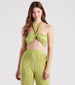 Elevate your island vacation look with this sassy bandeau crop top perfect for dinner and drinks! It features a sleeveless halter neckline with tie closure and is composed of a pleated satin fabric with lining. Style with the matching bottoms.