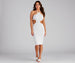 Flaunt this midi dress on your island getaway! Designed to accentuate your fab figure on a sleeveless. halter neck with tie closure. and sultry side cutouts on the form-fitting silhouette. Complete the look in strappy mules for a sunset dinner.