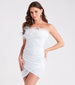 Izzey Sequin Strapless Feather Party Dress