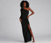 Alluring and chic. the Jade One Shoulder Ruched Formal dress never disappoints to create an eye-catching entrance on your next evening affair! She features a one-shoulder. long-sleeve bodice on a curve-hugging silhouette and a front ruching with a tie so you can customize the fit. Her sultry side slit shows some skin while elongating your figure on the floor-length hem. Composed of a slinky knit-lined fabric with plenty of stretch. Finish your look in a memorizing hairpiece.