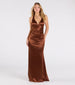 Dare to stun in the Jamie satin formal dress crafted with silky satin fabric for a gorgeous sheen. The bold plunge halter neckline and open lace-up back will turn heads while the fitted column silhouette flaunts your curves.