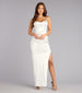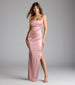 Jane Cowl Neck Slit Satin Formal Column Dress
