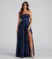 Bring the drama in the eye-catching and chic Jenny satin formal dress. She features a sleeveless square neckline with ruched detailing. adjustable spaghetti straps. and a sultry lace-up back design. Her flattering high waist seam flows out to a floor-length A-line silhouette with side pockets and a thigh-high front slit. Style this dress with rhinestone statement earrings and a sleek clutch.