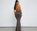 Make a gorgeous and glitzy entrance at your next formal soiree in the stunning Jessica glitter knit mermaid dress. She features a sleeveless square neckline. bungee spaghetti straps that lead to an open back with a lace-up strappy design. a high waist seam. and a floor-length fitted mermaid silhouette. Style this dress with sparkling rhinestone earrings to add all the more glamour to your look.