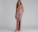 Shine like the gem you are with a sequin dress that brings that million-watt glow! You'll arrive at prom with all eyes on you. Jewel features sparkling sequins throughout. a sleeveless wrap V-neckline. adjustable spaghetti straps for a customized fit. ruching on the left side of the bodice. and a wrap skirt silhouette with a high slit. The dress is composed of a lined mesh fabric that offers a form-hugging fit with slight stretch. Complete your gorgeous prom-ready look with rhinestone heels and a faux fur wrap.