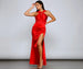 We love a dress that offers glam options. the Johanna dress offers so many ways to dress up for your next special occasion. Johanna features surplus convertible ties at the bodice that can be styled into different necklines that flatter. Her bodice leads to a form of hugging floor-length skirt that is accented with a high side slit. The dress is composed of a stretch satin fabric that offers a moderate stretch. Complete look with a rhinestone choker and bracelet.Â