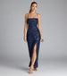 Get your sparkle on in the Jolie sequin formal dress with a classy form-hugging silhouette and sultry front wrap slit for effortless allure all evening!