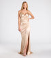 Flaunt a show-stopping silhouette in the Jordyn formal long dress designed with silky satin fabric for a luxe allure. The gorgeous mermaid silhouette is accented with a high front slit and a delicate train for an added touch of romance.