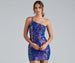 Catch the dance floor lights in the Karla sequin party dress and mesmerize the room in her dazzling arora! She features a sleeveless. one-shoulder design with an adjustable spaghetti strap. built-in padding. a bodycon silhouette. and a short hem. Composed of an iridescent sequin mesh-lined fabric with minimal stretch. Style with rhinestone earrings and heels.