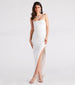 Keep it sleek and stunning in the Kassie formal dress perfect for cocktail soirees and dressy engagement parties! She features a sleeveless square neckline. spaghetti straps. a pleated side seam along her bodice. and a form-hugging slim silhouette with a sexy high-cut side slit and long-length hem. The formal dress is composed of a lined crepe fabric with plenty of stretch. Style with a glam jewelry set and platform heels to complete the look!