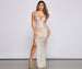 Illuminate the night with a sparkling sequin dress that puts you under the spotlight! Katharina features sparkling sequins throughout. a plunging sleeveless V-neckline. adjustable spaghetti straps. a plunging scoop back. and a sexy high side slit. The dress includes a mini skirt-length knit lining. Complete look with rhinestone heels and a rhinestone bracelet.