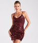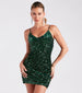Shine on in a sequin dress that brings the glitz and glam. Kathy features a plunging sleeveless V-neckline. iridescent sequins embroidered throughout. adjustable spaghetti straps for a customized fit. and a mini-length hem with a bodycon silhouette that will hug your curves. The sheer velvet fabric includes a full knit lining and offers a moderate stretch. Complete your A-list-worthy look with clear heels and rhinestone hoops.