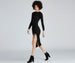 Keep it trendy with a midi dress that can be dressed up for your night date night with bae. The dress features a crew neckline. long sleeves. a ruched drawstring. a high side slit. and a midi-length silhouette. The dress is composed of a ribbed knit fabric that offers a form hugging fit with a moderate stretch. Complete look with ankle booties and a plaid scarf.